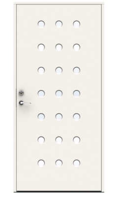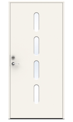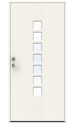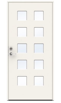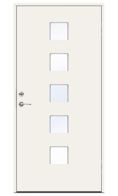 Samtliga ytterdörrar nedan går att få i flera färger, och detsamma gäller från de flesta dörrtillverkare. En vit ytterdörr är stilsäker och neutral, men väljer man en färgad dörr så kan man få en häftig effekt på rätt hus.